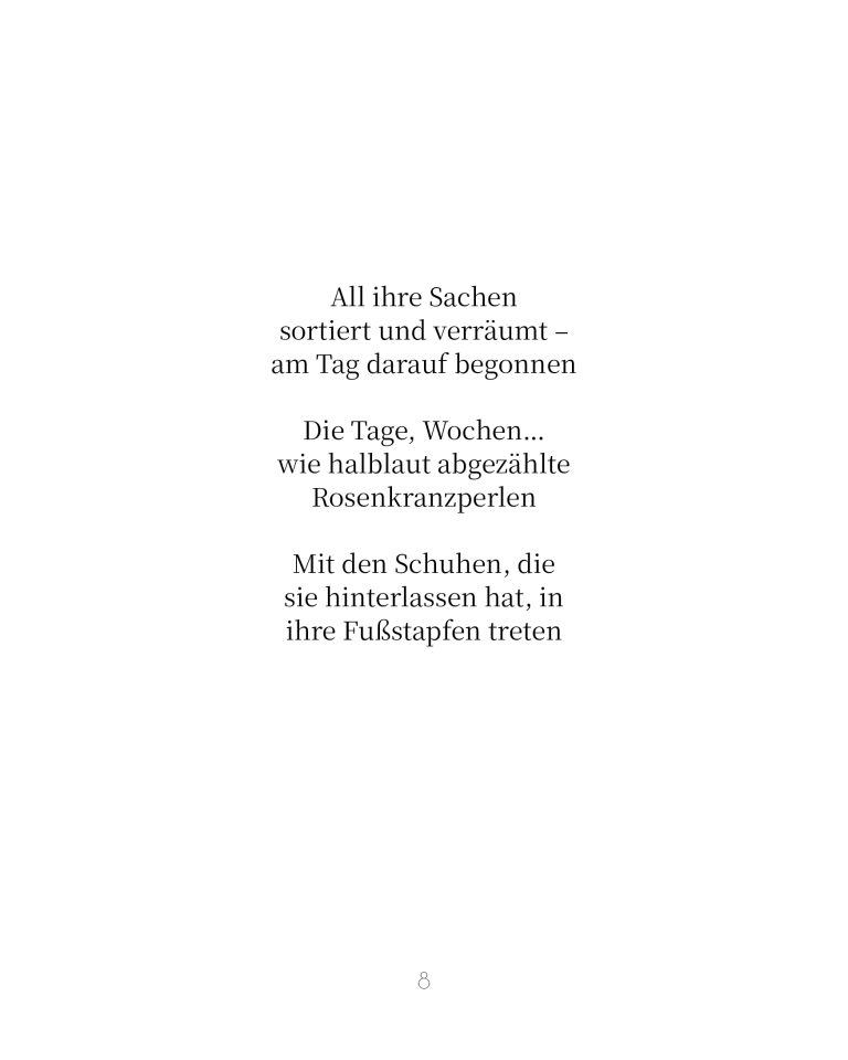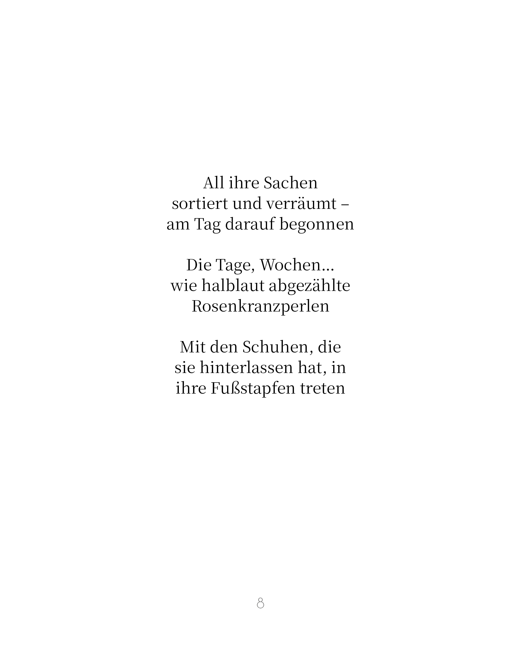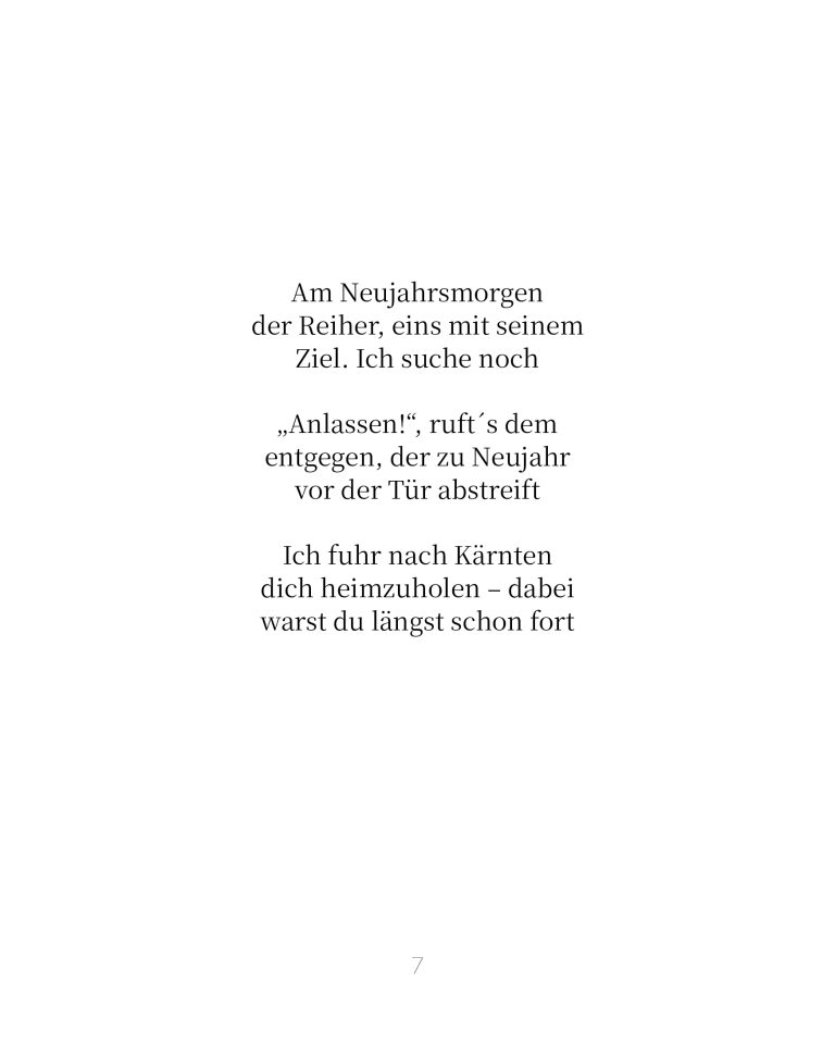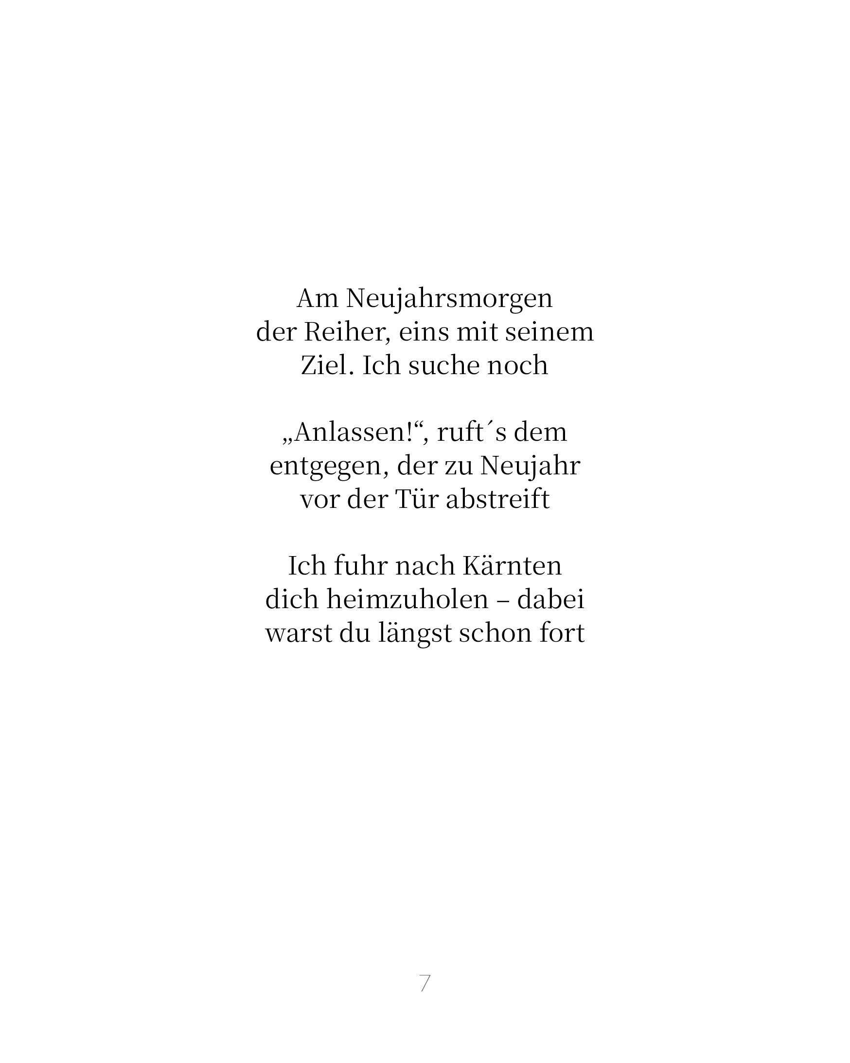 Diese 180 lakonischen Dreizeiler handeln von Natur, Liebe und Tod. Ausgangspunkt ist die Landschaft des Mostviertels. Die Gedichte sind nach den vier Jahreszeiten geordnet, und jedes geht von einer konkreten Impression aus. Ein Spiel mit Gegensätzen macht aus der flüchtigen Wahrnehmung eine bleibende Erfahrung.