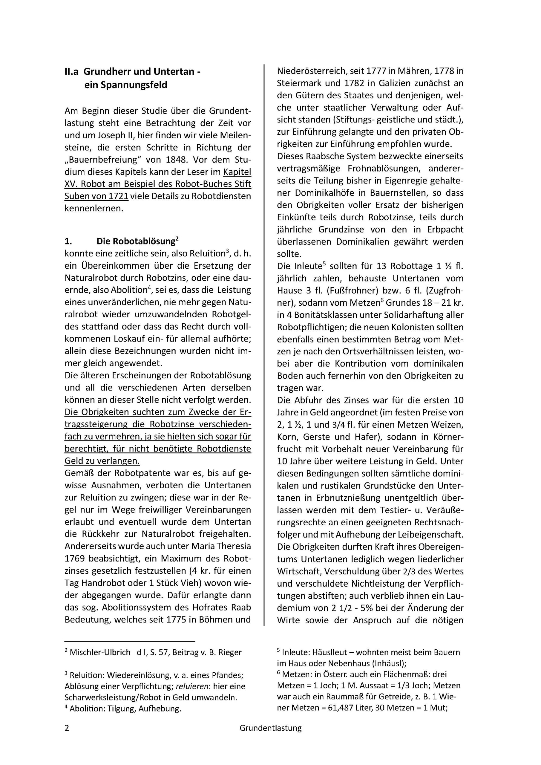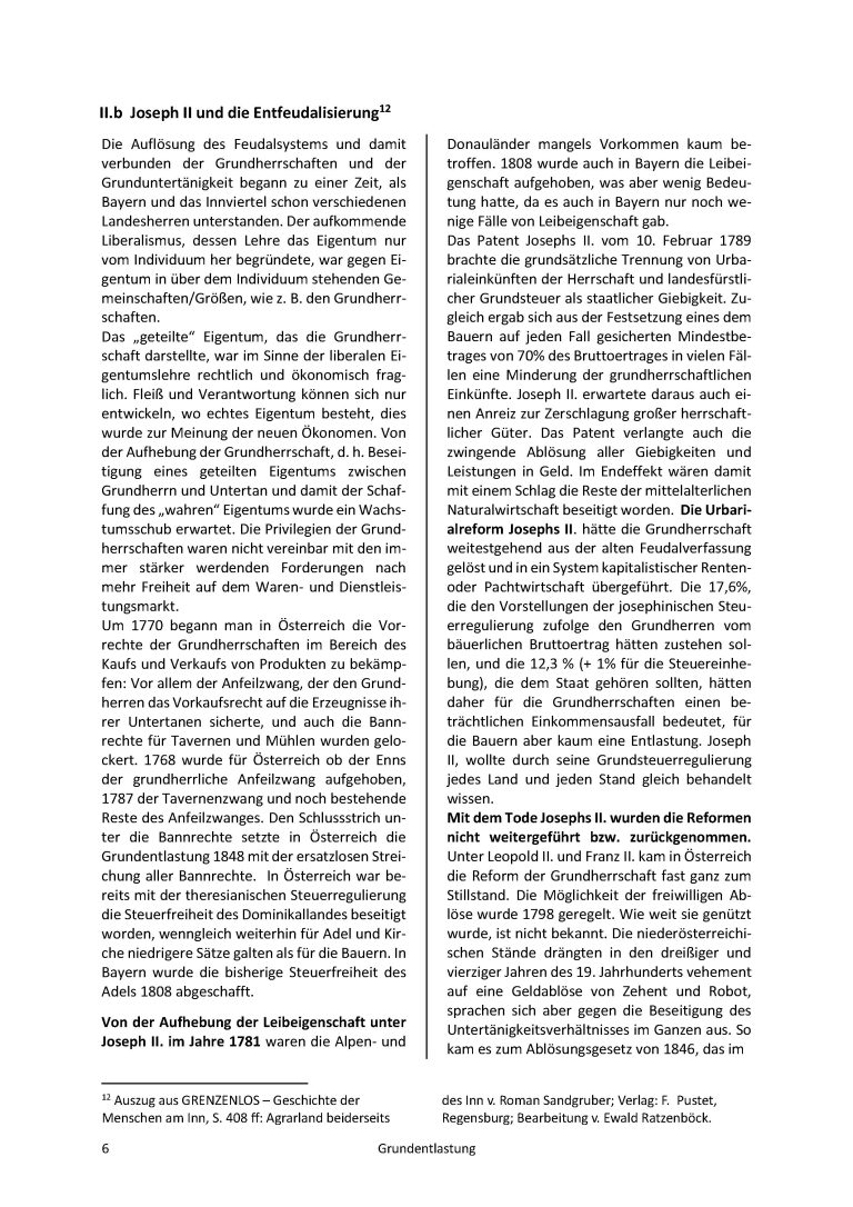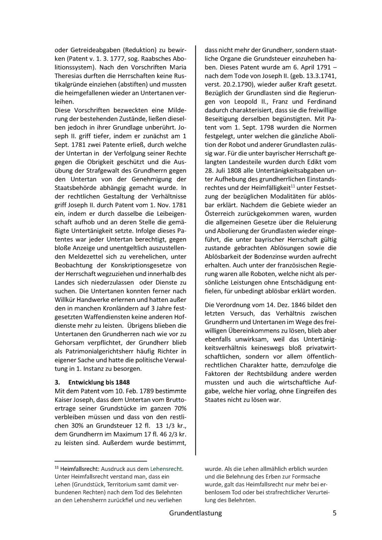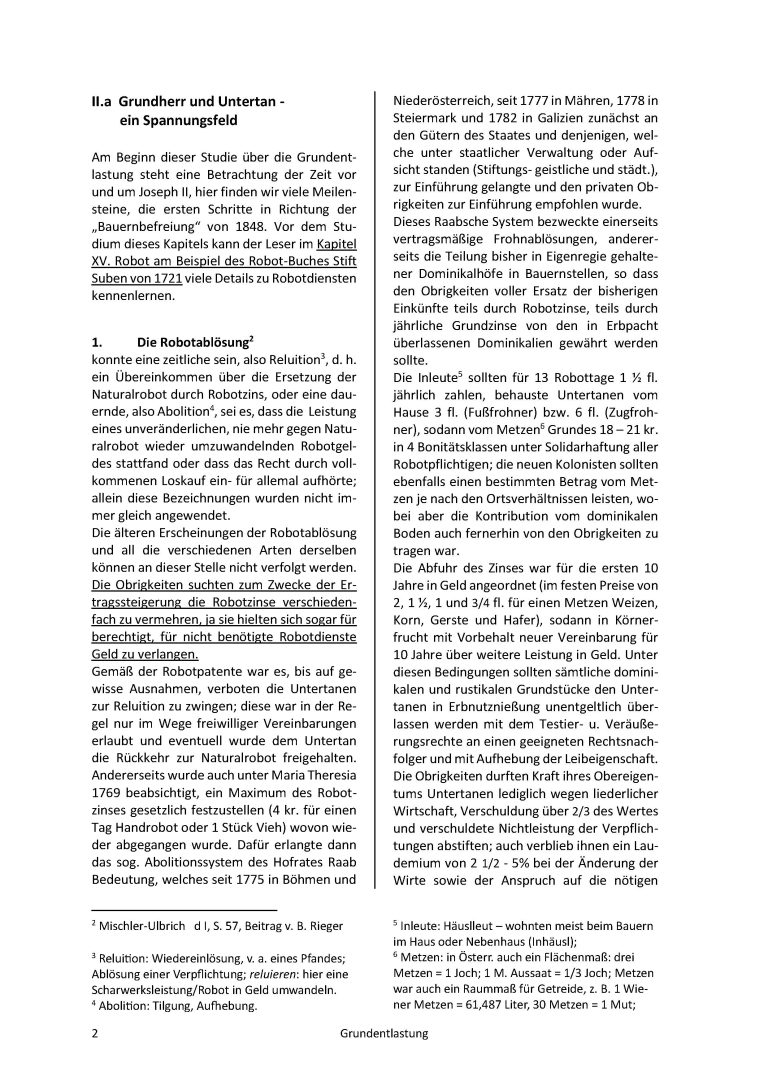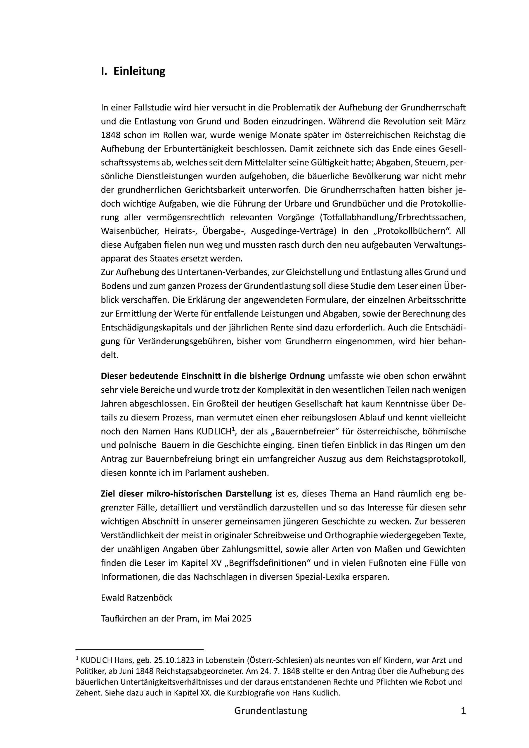 In einer Fallstudie wird hier versucht in die Problematik der Aufhebung der Grundherrschaft und die Entlastung von Grund und Boden einzudringen. Während die Revolution seit März 1848 schon im Rollen war, wurde wenige Monate später im österreichischen Reichstag die Aufhebung der Erbuntertänigkeit beschlossen. Damit zeichnete sich das Ende eines Gesellschaftssystems ab, welches seit dem Mittelalter seine Gültigkeit hatte; Abgaben, Steuern, persönliche Dienstleistungen wurden aufgehoben, die bäuerliche Bevölkerung war nicht mehr der grundherrlichen Gerichtsbarkeit unterworfen. Die Grundherrschaften hatten bisher jedoch wichtige Aufgaben, wie die Führung der Urbare und Grundbücher und die Protokollierung aller vermögensrechtlich relevanten Vorgänge (Totfallabhandlung/Erbrechtssachen, Waisenbücher, Heirats-, Übergabe-, Ausgedinge-Verträge) in den „Protokollbüchern“. Dieser bedeutende Einschnitt in die bisherige Ordnung umfasste wie oben schon erwähnt sehr viele Bereiche und wurde trotz der Komplexität in den wesentlichen Teilen nach wenigen Jahren abgeschlossen. Ziel dieser mikro-historischen Darstellung ist es, dieses Thema an Hand räumlich eng begrenzter Fälle, detailliert und verständlich darzustellen und so das Interesse für diesen sehr wichtigen Abschnitt in unserer gemeinsamen jüngeren Geschichte zu wecken.