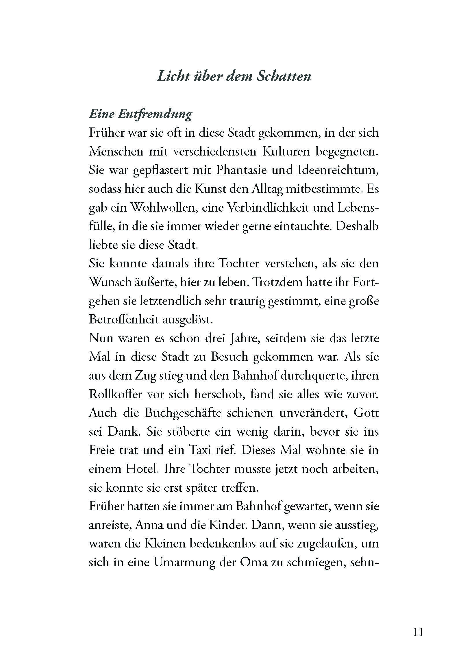 Immer wieder ist es eine gewisse Sehnsucht, der man in den hier versammelten Erzählungen und Gedichten begegnet. Eine Mutter, die unter der Entfremdung ihrer erwachsenen Tochter leidet, ein zauberhaftes Schlösschen, dessen Geheimnis eine Frau in ihrer eigenen Geschichte ergründet, ein Anklingen von Problemen und ihre Lösungsversuche, Erinnerungen und Rückblicke, die der Vergangenheit versöhnend und auch mit einem Lächeln gegenübertreten. Gedichte begleiten die Erzählungen, indem sie sich den verschiedenen Themen annähern. Damit versucht Ingeborg Kraschl, einen reizvollen Zusammenhang zwischen Lyrik und Prosa zu gestalten.