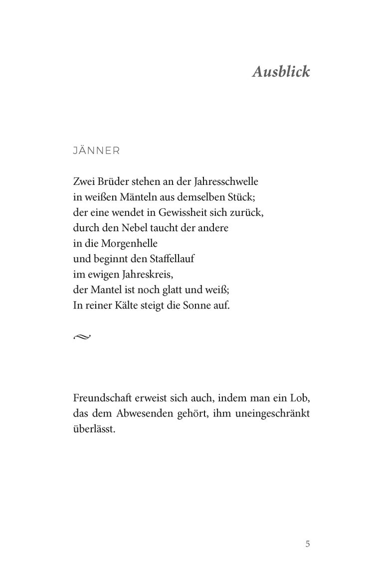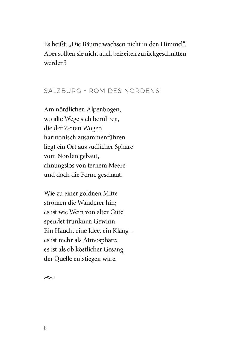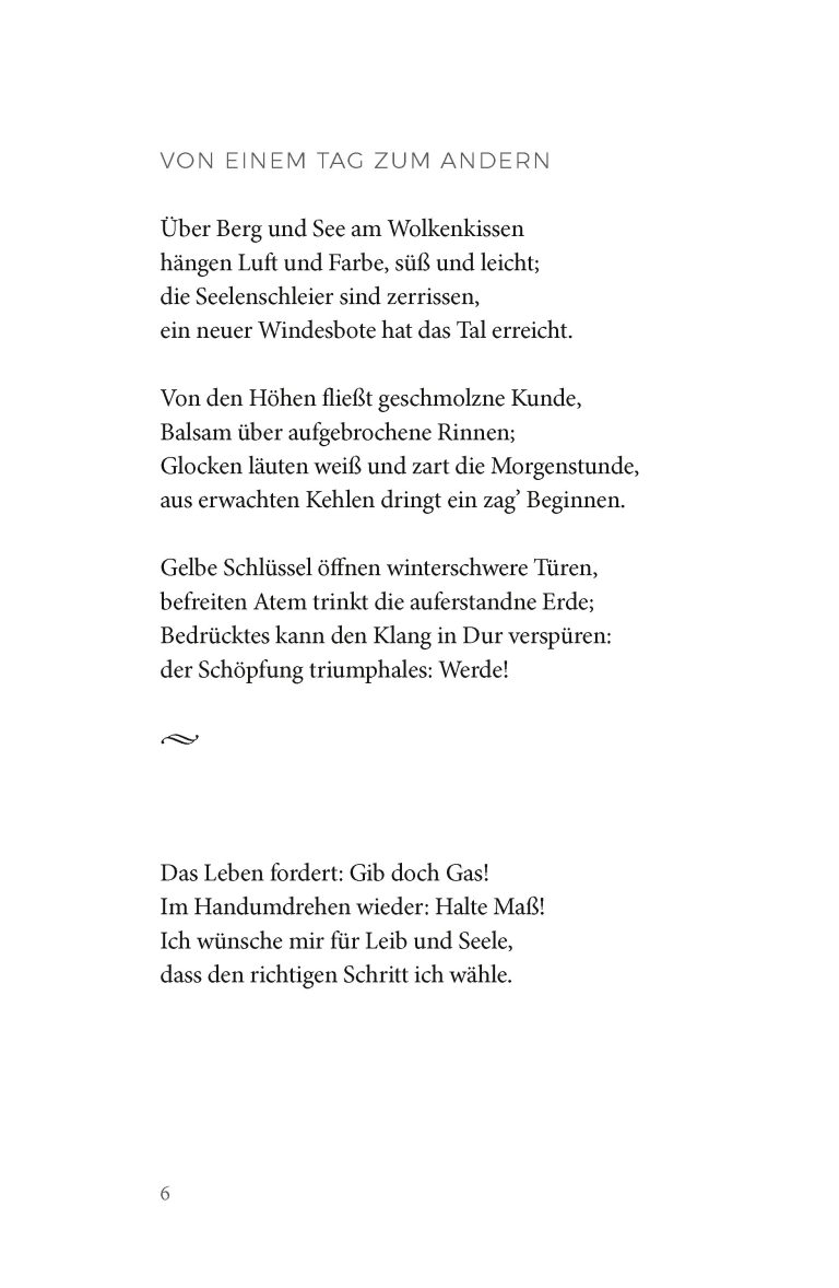 Die Gedichte führen durch den Jahreskreis. Illustriert mit Fotografien des Autors erwarten den Leser, die Leserin Gedichte zu aktuellen Themen ebenso wie zu kunstgeschichtlichen oder religiösen. Lebensweisheiten werden in Aphorismen vermittelt. Nachdenkliches wechselt mit Humorvollem; es sind Betrachtungen, die aus der christlich-humanistischen Grundhaltung des Autors entstanden sind. Der starke Natur- und Heimatbezug ist in jeder Zeile spürbar.